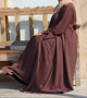This stunning Black Chocolate Abaya is crafted from luxurious premium Nada fabric, known for its smooth, silky texture and exceptional comfort. The full-length design gracefully flows, creating an elegant and flattering silhouette that allows for effortless movement. The rich black fabric is beautifully accented with golden strand detailing, adding a touch of opulence and sophistication. The intricate embroidery along the front and sleeves offers a refined, subtle elegance, while the wide sleeves enhance its timeless appeal. Perfect for both daily wear and special occasions, this abaya exudes a sense of luxury and grace. Please note that the color may vary slightly in photos due to lighting, but the deep black hue, complemented by the golden accents, brings a rich, warm depth to this exquisite piece.
